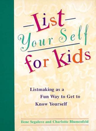 Download list your self for kids listmaking as fun way to get to know yourself Doc online is a convenient and frugal way to read list your self for kids listmaking as fun way to get to know yourself you love right from the comfort of your own home. Yes, there sites where you can get Doc "for free" but the ones listed below are clean from viruses and completely legal to use.