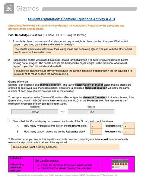 Read Online Chemical Equations Gizmo Activity B Answers Kindle Editon